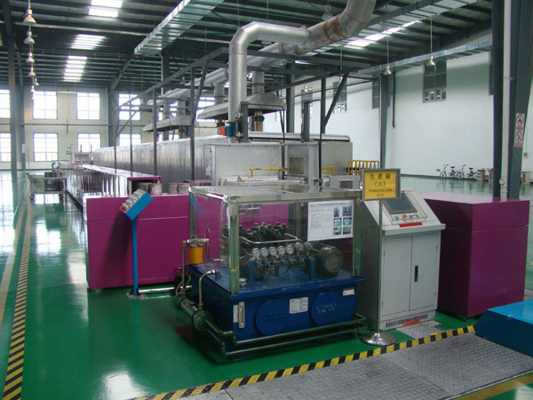 四、主要技術(shù)指標(biāo)要求 4.1爐膛尺寸:25000×720×290(含推板厚度) (L×W×H)mm(雙推板)。 4.2窯口有效尺寸:680mm×210mm(W×H) 4.3設(shè)備尺寸:31000mm×5500mm×2500mm(L×W×H)(參考值)。 4.4最高溫度:1300℃。 4.5常用溫度:1200℃。 4.6額定功率:320KW 4.7供電能力:≥350 KW 4.6控溫組數(shù):見溫度曲線 4.7爐溫穩(wěn)定度:±3℃/24h。 4.8恒溫區(qū)有效截面溫差:±5℃。 4.9爐體表面溫升:≤45℃。 4.10推進(jìn)速度:500-2500mm/h。 4.11窯內(nèi)含氧量:最高工作溫度空窯時(shí),在升溫區(qū)、恒溫區(qū)、降溫區(qū),三個(gè)測(cè)氧點(diǎn)平均≤80ppm+氣源氧含量。 4.12出口溫度:≤100℃。
