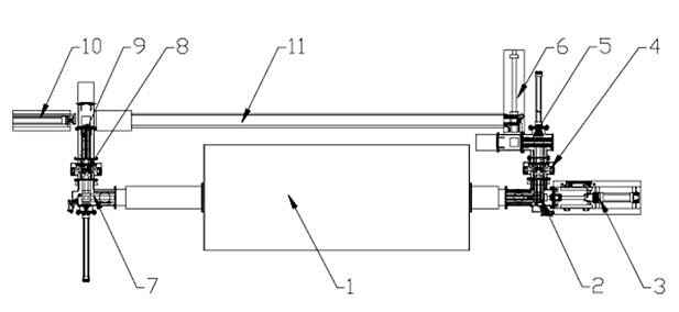 其中:1—爐體;2—進(jìn)料倉;3—主推裝置;4—前置換倉內(nèi)閘門;5—前置換倉;6—入推裝置;7—出料倉;8—后置換倉內(nèi)閘門;9—后置換倉;10—回推裝置;11—通軌。